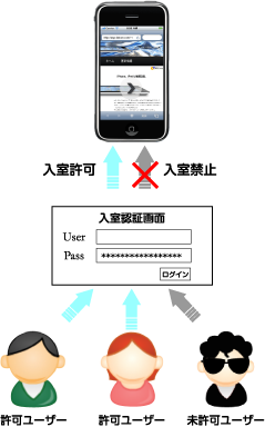 認証システム機能によるコンテンツ配信や、ユーザーグループ毎にコンテンツ閲覧権限の設定が可能です。 個別認証機能により、一般には公開したくないビデオコンテンツやビジネス資料、プライベートな映像といった会員向けコンテンツの、第三者による視聴や閲覧を制限できますので、安心してご利用いただけます。 グループ毎にユーザー権限設定が行えますので、下記の例のように、それぞれ割り当てられたグループ権限により、閲覧許可の設定が行えます。 |